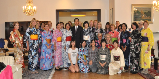 大使ご夫妻を囲んで International Women's Club, Helsinki の皆さんと記念撮影