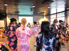 Since 2010, I have been collaborating with Prof. Yayoi SATSUMOTO at Yokohama National University with my students to organize overseas yukata workshops and to promote international cultural exchange through the kimono. Furthermore, we have been teaching about the kimono and yukata to international students several times a year on campus.