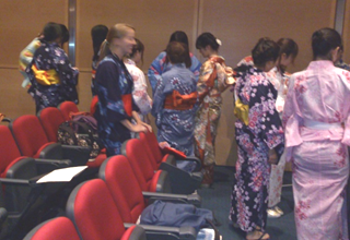 今回は、参加メンバーが少ない上に移動が多く、しかも対象者が小学生から大人までと幅広かったため、対象者に応じたプログラムと浴衣を準備しなければならない困難が伴いました。その分、各人の役割と責任が重く緊張しましたが、ワークショップ後の充実感は最高のものになったように思います。全ての受け入れ先で周到な準備と心をこめたもてなしを受けて嬉しく思いました。前半にはトラブルが重なりましたが、日本国大使館とヨウツェノ学院より助けていただき、無事しのぐことができました。