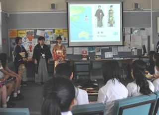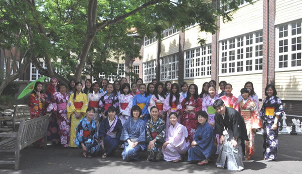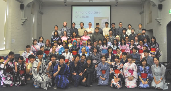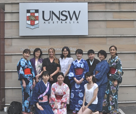 「シドニー英語と多文化研修」の引率でUNSW滞在中の宇田先生、 埼玉大学からの短期留学の学 生20名とUNSWとUTSで合流し 、彼らもきものを通した文化交流を体験しました。SGHSでは日本語を学ぶ生徒27名がゆかたの着装を楽しみました。日本語教師のGenevieve Ma先生には実に親切にしていただき、東京での再会を約束して別れました。