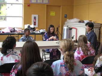 アメリカオレゴン州ポートランドにある、日本語を学ぶ4校の中学・高校のクラスに出向いて、ワークショップを開催しました。大妻女子大学阿部栄子先生による振袖の帯結びの実演と佐原亜子さんによるお茶の点前・解説を行って、代表者に体験の機会を提供できました。本研究室からは1名の学生参加でしたが、着付けの示範を全回担当して大活躍でした。開催にあたり薩本先生の現地在住の御親戚と在ポートランド領事事務所にご尽力いただきました。